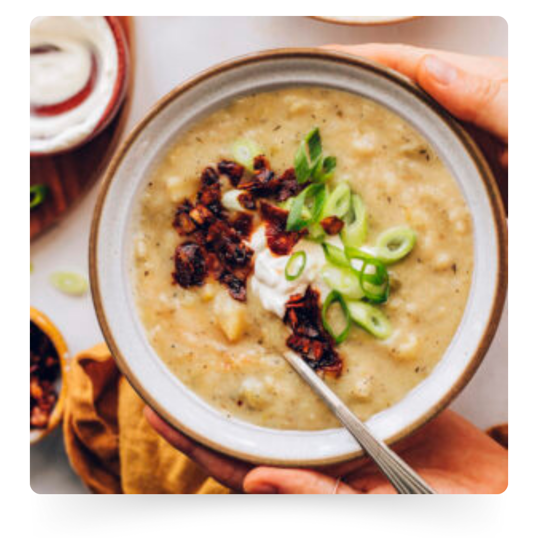 • Dairy Alternatives: Use cashew cream (cashews soaked in water) or coconut milk, as rich alternatives for creamy soups.